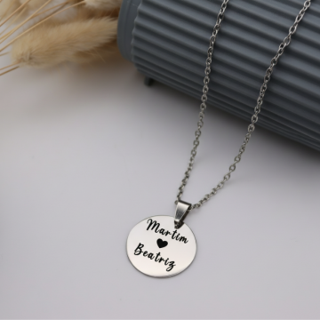 Colar Medalha Redonda Inicial Personalizada em Aço Inoxidável